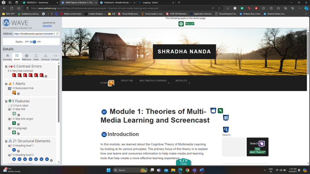 After analysis, my first module using WAVE Accessibility I have added my screenshot